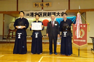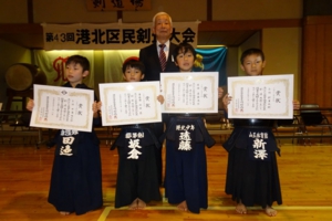 小学生1・2年の部で新澤くんが3位、中学1年の部で藤原さんが優勝、佐藤来春さんが準優勝、団体の部で山王チーム(先鋒猪狩、中堅眞山、大将佐藤隆祐)が優勝しました。