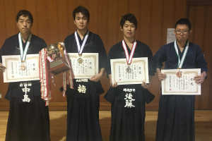 今回は小学1-2年の部で荒巻遥斗くんが第3位、小学3年生の部で森本樹くんが第3位、高校一般男子37歳以下の部で楠拓也先輩が見事優勝。そして団体の部で山王体育館チームが見事優勝いたしました。